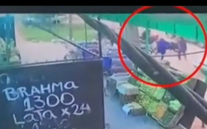 En el material que comenzó a circular este sábado, no sólo se ve el momento del ataque sino también la reacción de los vecinos que a esa hora estaban realizando sus compras en el supermercado: tres personas que se encontraban a dos metros de distancia del lugar en el que se produjo la embestida corren despavoridas hacia el interior del local mientras que otros dos se esconden detrás de un cartel que muestra una oferta de cervezas.