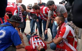 La escena se repitió con los futbolistas Renan Lodi, Jan Oblak, Saúl, Koke, Marcos Llorente y Luis Suárez, que salieron caminando en grupo y debieron ser separados por la policía de su parcialidad.