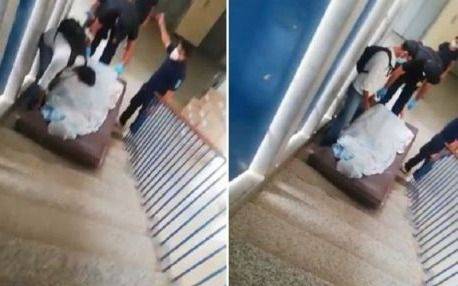 Fueron los propios médicos y enfermeros de ese centro de salud quienes enviaron un video en el que se ve cómo son trasladados los cadáveres de pacientes con coronavirus. "Miren detenidamente el video. Todos los pacientes de covid fallecidos en este hospital son lanzados por las escaleras, porque los ascensores están dañados”, aseguran los empleados.
