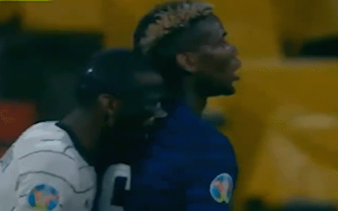Rudiger🇩🇪 mordiendo a Pogba🇫🇷. El VAR no paró la jugada y siguió el juego. Terminó el primer tiempo y gana Francia 1-0 a Alemania.#Eurocopa ⚽🏆