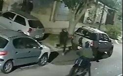 Tal como informó EL DIA, la víctima estaba a punto de entrar a su casa cuando apareció una moto con dos hombres encapuchados. Uno bajó y corrió hacia la vereda con un arma de fuego en una mano, según el gesto que muestra la secuencia tomada por una cámara de seguridad. Tras amedrentar y robar, el dueto huyó rápidamente.