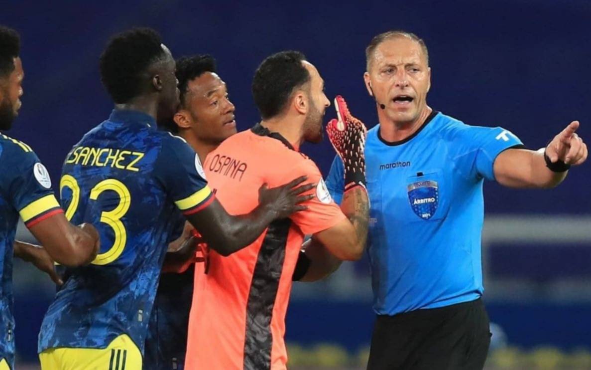 La polémica se generó porque Colombia le ganaba 1-0 a Brasil en Río de Janeiro. Y el local empató el partido con un gol de Roberto Firmino, que se produjo luego de un rebote en el árbitro Pitana, quien dejó continuar el juego y generó el reclamo del equipo colombiano aunque el VAR convalidó el tanto.