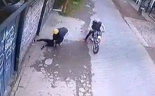 El caso ocurrió en las últimas horas en 11 y 502, donde una joven fue sorprendida por los delincuentes que se movían a bordo de una moto. Las escena dura apenas unos segundos, suficientes para mostrar cómo golpean a la chica y la tiran al pavimento para intentar sacarle sus pertenencias, más precisamente su teléfono celular. El accionar de los malvivientes se dio también ante la presencia de otra vecina, que llegó a resguardarse en una vivienda.