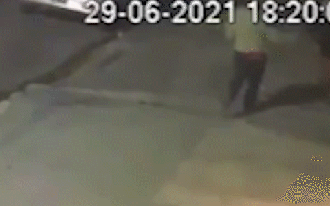 Una mujer que caminaba por una de las veredas de la avenida 44 entre 5 y 6 fue una agresión inusual e inesperada. La secuencia quedó grabada en una cámara de seguridad de la zona.