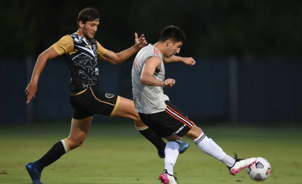 Palm Beach Stars, de la tercera categoría del fútbol local, dirigido por el argentino José Luis Villarreal, fue el rival que enfrentó en el predio World Center, en una prueba que debió postergar su comienzo una hora por la amenaza de una tormenta eléctrica. Y no hubo parámetros, ya que River se impuso por 8-0 con goles de Suárez (2), Paradela (2), Carrascal (2), Fontana y Palavecino.