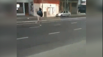 Al grito de "Aguante Argentina", cruzó la avenida sin pantalones saludando a los autos que pasaban, corrió hacia la esquina de Miguel Estanislao Soler y levantó los brazos a modo de festejo. Segundos después, desapareció por una de las entrecalles antes de que llegara la policía.