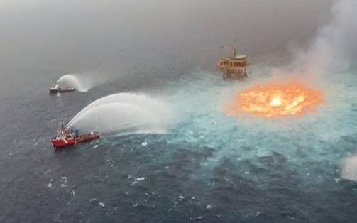 Tres buques trabajan para sofocar el incendio, antes de que los buzos de Pemex puedan descender para cerrar la válvula.