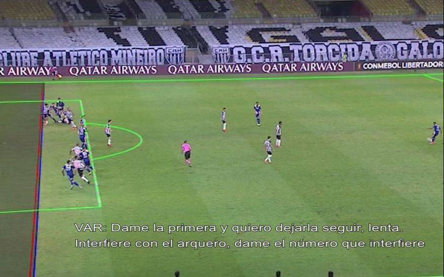 El VAR revisó si Weigandt le había cometido infracción a su marcador, aunque notaron que la pelota todavía no estaba en juego cuando el hombre del Mineiro estaba en el suelo simulando una infracción y tras ello pusieron la atención en el fuera de juego.