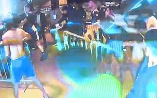 Luego se conoció otro video en el que, en plena bataola, Rojo arranca un matafuegos y encara hacia la zona de pelea. En ese momento intercedieron Marcelo "Chelo" Weigandt y Jorge "Patrón" Bermúdez para evitar que la situación pasara a mayores.