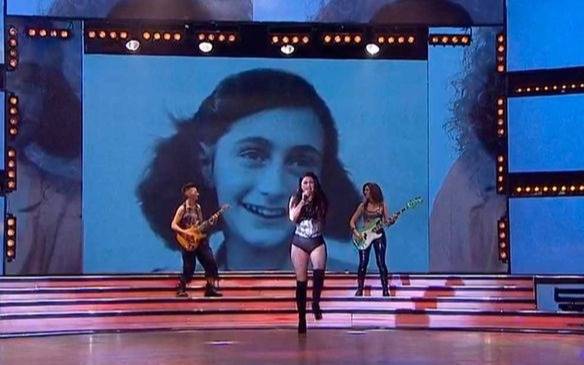 El rostro de la niña, conocida mundialmente por la edición del diario íntimo que escribió en los casi dos años y medio que pasó oculta con su familia en una casa de Amsterdam, apareció anteanoche en una de las pantallas del estudio del programa que conduce Marcelo Tinelli, mientras la modelo Sofía “Jujuy” Jiménez interpretaba una versión de “Yo no soy esa mujer”, de la mexicana Paulina Rubio.