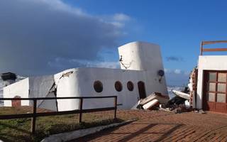 La sudestada que afectó en la madrugada de ayer a la Costa Atlántica en la Provincia de Buenos Aires arrojó como resultado el derrumbe de una casa ubicada en las inmediaciones de la playa en la localidad de Gesell y también Mar del Tuyú.