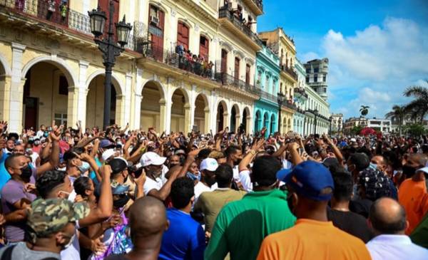 La existencia de tiendas de comida en dólares, abiertas en julio de 2020 ante la imperiosa necesidad oficial de divisas, marcó diferencias en una población acostumbrada al igualitarismo, y también sirvió de combustible a las inéditas manifestaciones del 11 y 12 de julio, junto a la escasez de alimentos y los efectos de 16 meses de pandemia. Las protestas se saldaron con un muerto, decenas de heridos y cientos de detenidos. (AFP)