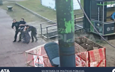 Conjuntamente, luego de unos minutos, el mismo sujeto agredió a personal de la caseta de seguridad de la Plaza San Martín arrojando una piedra contra la misma. En este marco, y quedando todo registrado en las cámaras de seguridad, los efectivos redujeron al agresor y lo trasladaron a la dependencia policial.