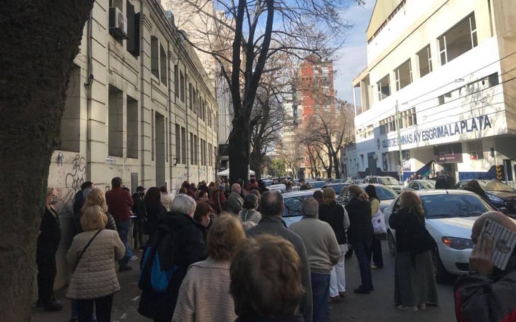 La jornada de vacunación en la Escuela del Gobierno de Salud, en 4 entre 51 y 53, no arrancó de la mejor manera ya que en poco tiempo se hizo una larga cola, a tal punto que denuncian que la demora es de unas dos horas.