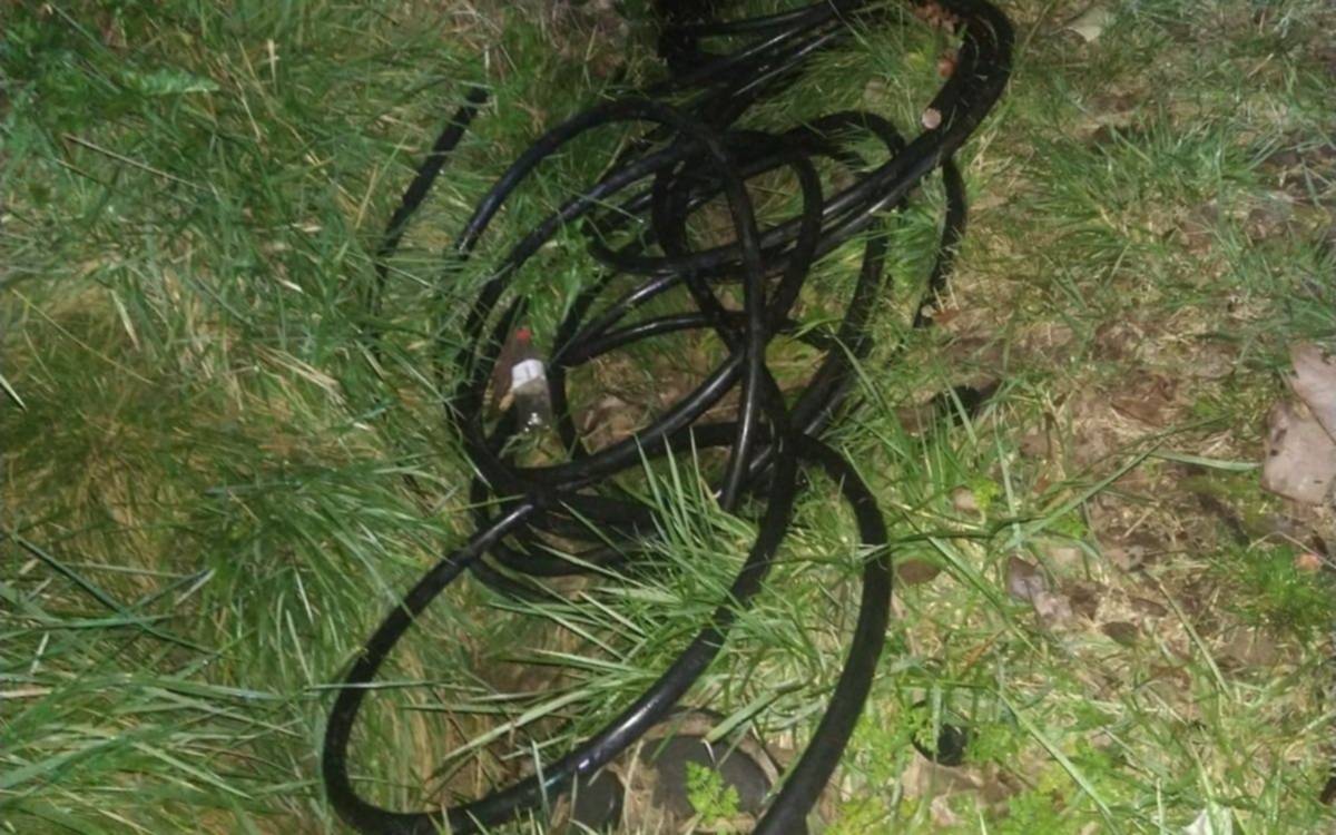 Al llegar al lugar, los efectivos del Comando Patrulla Base Norte descubrieron detrás del rodado una cierra de mano y varios rollos de cables cortados y ocultos en una zanja.