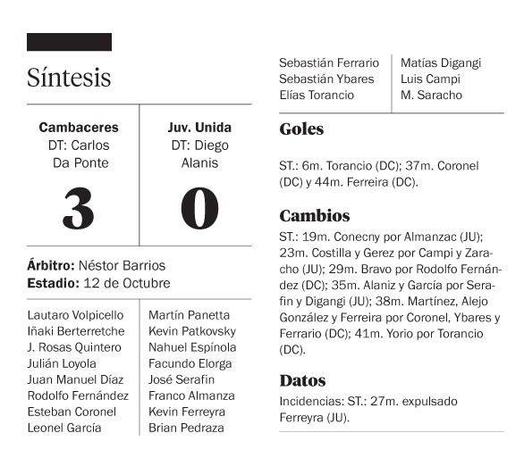 Defensores de Cambaceres tuvo un cierre de Apertura brillante, como no sucedía desde hacía varios años. A pesar de no haber podido obtener el primer puesto, que finalmente quedó en poder de Puerto Nuevo, dejó encendida la luz de la ilusión y de firme candidato a lograr el Clausura, que se pondrá en marcha el próximo fin de semana.
