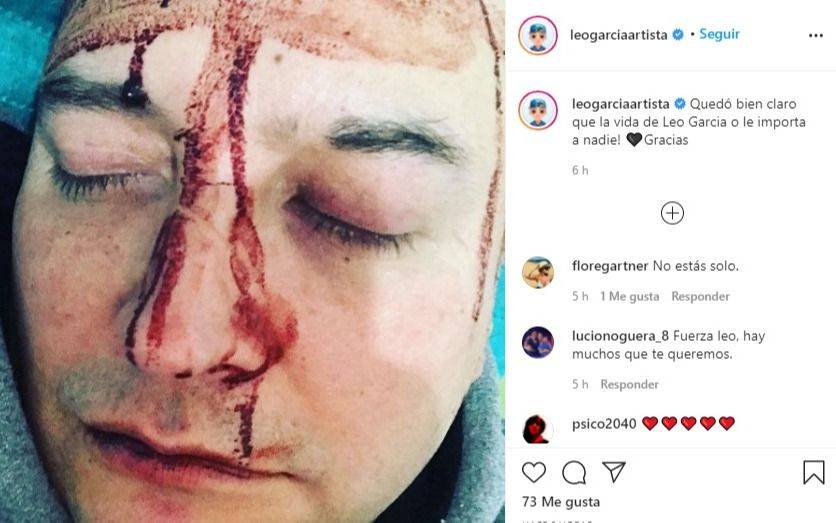 El músico Leo García sufrió un ataque homofóbico esta madrugada en la localidad bonaerense de General Rodríguez y mostró sus heridas que lo desfiguraron a través de las redes sociales donde dijo que no va a "culpar a nadie", pero aseguró que le pasó "por ser homosexual".