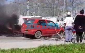 De un momento a otro un auto Gol color rojo, manejado por una mujer, no se molestó en desviar su camino y sin impunidad pasó por encima de las ramas llevándose puesta una persona que terminó tirada en el piso. Pese a esto, aceleró y se dio a la fuga, sin asistir a la damnificada.