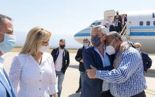 Alberto Fernández llegó hoy a La Rioja junto a la primera dama, acompañado por los ministros del Interior, Eduardo De Pedro; de Obras Públicas, Gabriel Katopodis; de Desarrollo Social, Juan Zabaleta; y el designdo titular de Educación, Jaime Perczyck.