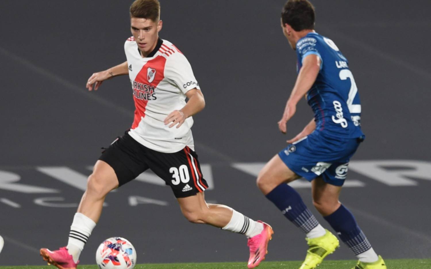 River: Franco Armani; Santiago Simón, Robert Rojas, Paulo Díaz, Fabricio Angileri; Nicolás De la Cruz, Agustín Palavecino, Enzo Pérez, Jorge Carrascal; Julián Álvarez y Benjamín Rollheiser.