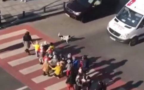 La historia de este adorable can, llamado Kaputa, ocurrió en la ciudad costera de Batumi, en Georgia, en donde se interpuso frente a los autos y se mantuvo ladrando con suma atención hasta que los chiquitos lograron atravesar el camino visiblemente transitado.
