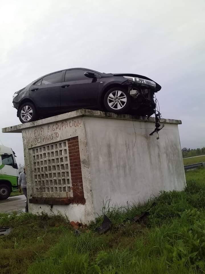 No manejaba el auto fantástico, aunque muchos siguen sin entender cómo su conductor hizo para ponerlo arriba de una garita, en la ruta 14, a la altura del ingreso a Colonia Hughes. El increíble accidente tuvo como protagonista a un jefe policial, titular de la comisaría de San José, que se despistó, impactó contra un guadarrail y quedó “estacionado” en el techo de la estructura de hormigón, a más de dos metros de la cinta asfáltica. El efectivo sufrió heridas leves.