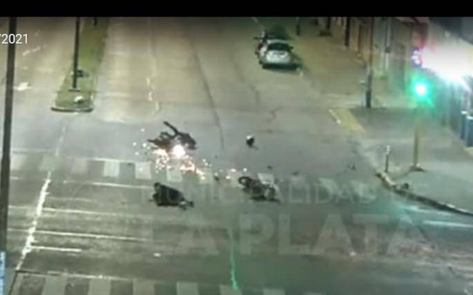 Dos motos chocaron fuertemente en la esquina de 44 y 31, dejando como saldo dos personas heridas que debieron ser hospitalizadas. Una cámara del Centro de Operaciones y Monitoreo de la Municipalidad filmó el accidente, que ocurrió porque uno de los conductores pasó el semáforo en rojo sin ver que se acercaba a toda velocidad otra moto por la 44.