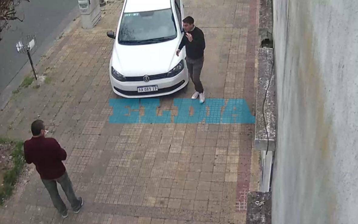 En el video, material que envió a EL DIA, se puede observar como José se dispone a intercambiar palabras en tono calmo, pese a que el conductor descendió a amenazarlo. Al ocurrir esto, el vecino le señala la cámara de seguridad y este se va.