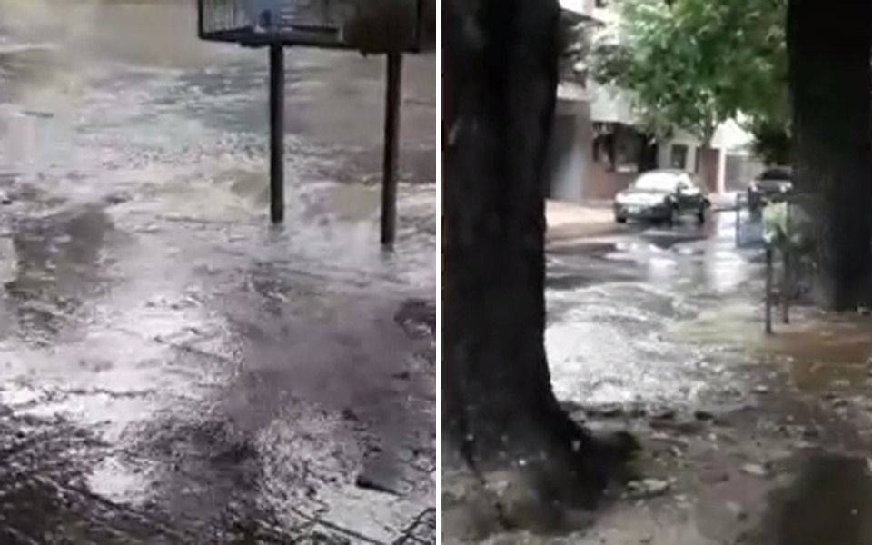 "Jamás vi tanta agua salir de abajo de la calle, no se si es cloaca o agua", comentó un Gabriel, un frentista de la cuadra.