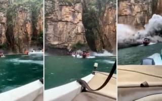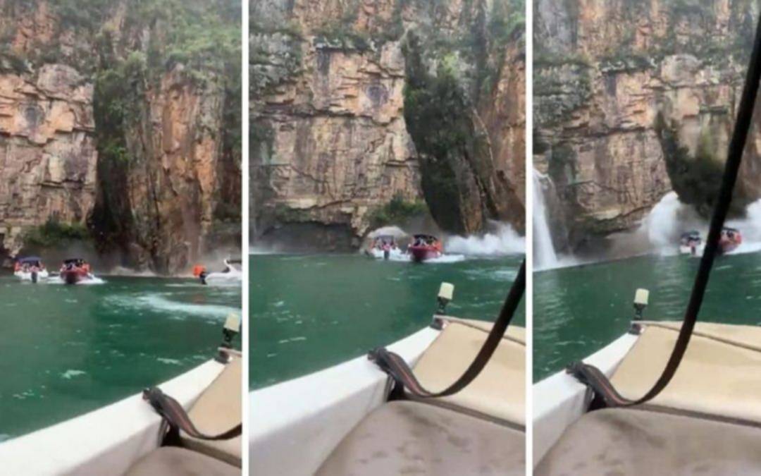 El accidente se registró entre los poblados de Sao Jose da Barra y Capitólio, del que habían partido los botes. En las imágenes de video puede apreciarse a un grupo de botes pequeños moviéndose lentamente cerca del acantilado en el lago de Furnas cuando se produce una fisura en la roca y un trozo enorme cae sobre varias de las embarcaciones.