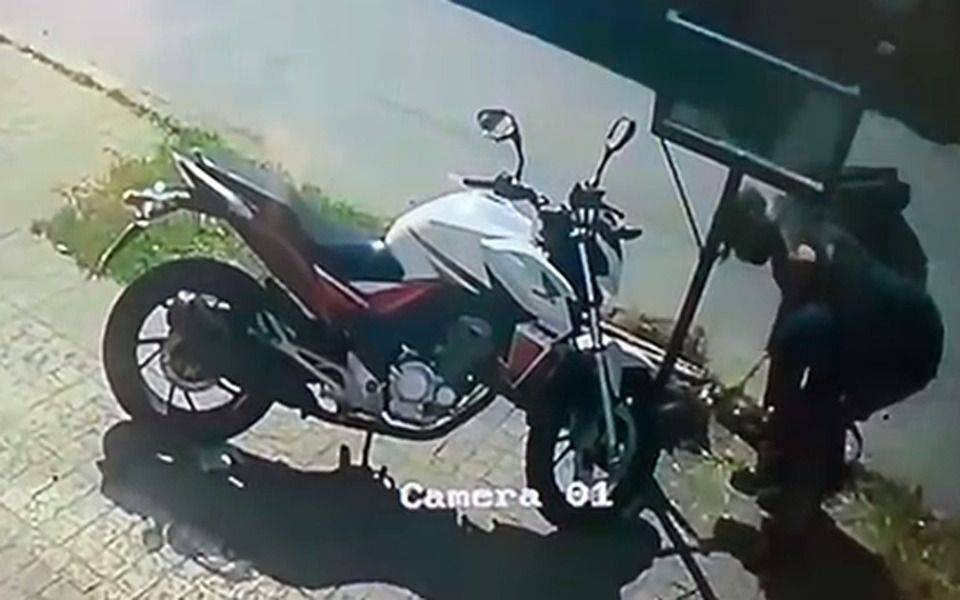 Ocurrió en 72 entre 8 y 9 a las 10 de la mañana del martes y una cámara registró la secuencia casi en primer. La Honda CBX-250 de color blanco estaba estacionada y atada en la vereda.