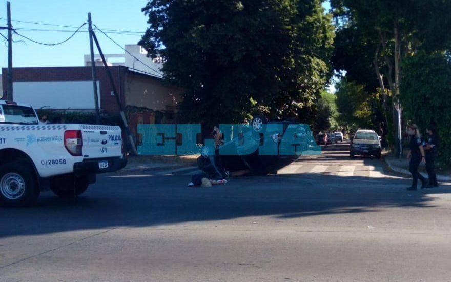 Por causas que se tratan de establecer, un Renault Clio volcó cerca de las 7.30 de la mañana en la mencionada esquina tras chocar contra un utilitario Peugeot Partner. A juzgar por las imágenes, habría sido el Clio el que impactó de atrás a la Partner, aunque los hechos son materia de investigación ya que una versión sostiene que la Partner frenó de golpe.