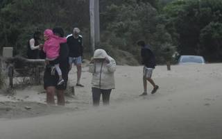 Analía y su familia, que llegaron este lunes a Mar del Plata y a pesar del mal clima salieron a pasear hasta un parque de juegos ubicado sobre la peatonal San Martín lo resumen así: “es un clásico venir a la peatonal y a los juegos. Nos divertimos entre todos y a los adultos nos hace acordar a nuestra infancia”.