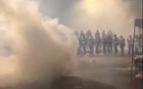 También se oberva el momento en que los agentes lanzaron gases lacrimógenos, a la vez que se escuchan varias detonaciones. Por el lado de los hinchas, algunos respondieron con botellas y otros objetos sobre el cordón de seguridad.