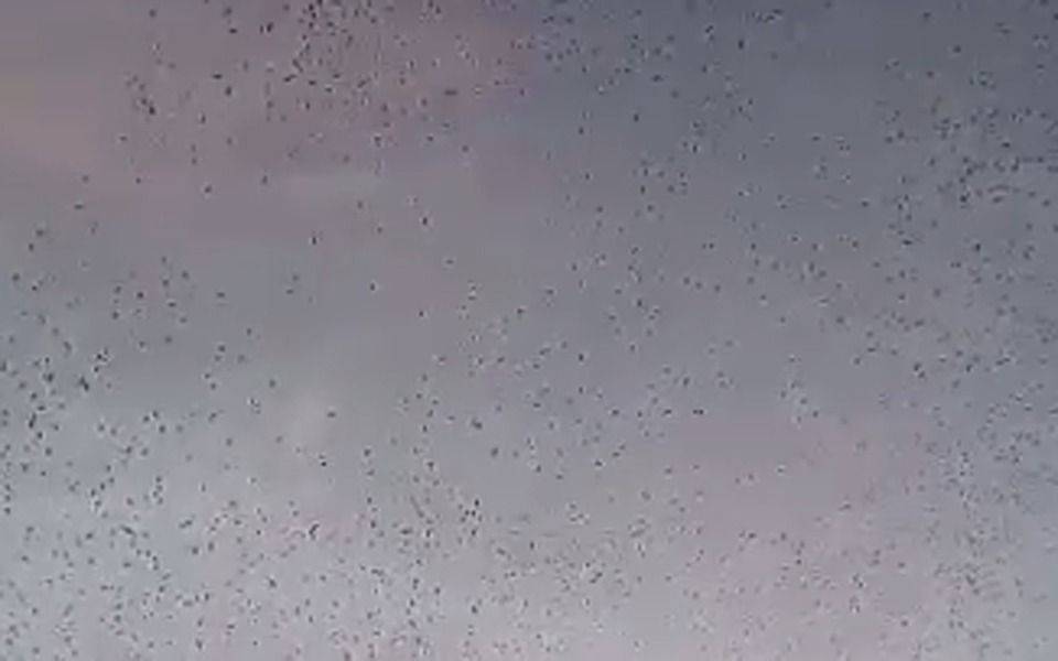 El cambio constante del clima con tormentas frecuentes, intenso viento y temperatura que sube y baja todos los días, motivó un actor conocido pero poco frecuente para esta época del año: el show de los estorninos desplazándose en banda.