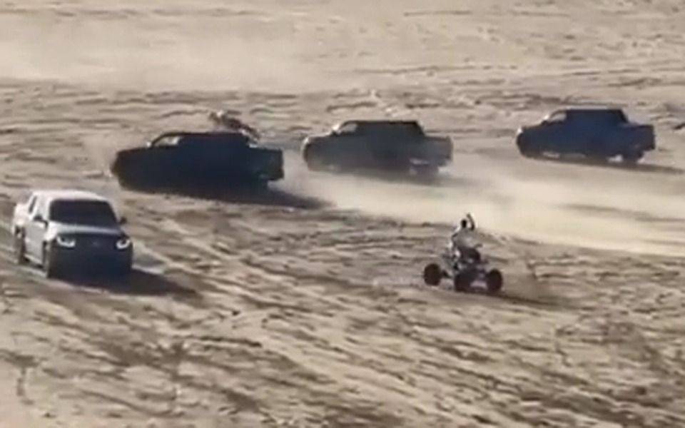 El hecho quedó registrado por una persona que filmó cuando el rodado de gran porte competía en los médanos con otros dos del mismo tamaño y en su camino colisionó se frente contra la motocicleta que estaba al mando de Gonzalo Rodríguez, quien salió despedido.