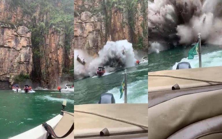 La tragedia se agigantó porque el derrumbe de un franja rocosa fue filmado desde otras embarcaciones y pudo verse cómo la piedra gigante aplastó a las lanchas e hizo volar por los aires a varias personas.