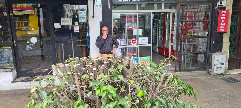 Parte del episodio quedó registrado en el celular del hombre, que también denunció la “poda indiscriminada” de uno de los ficus situados en la vereda de su comercio, justo frente a la Terminal.