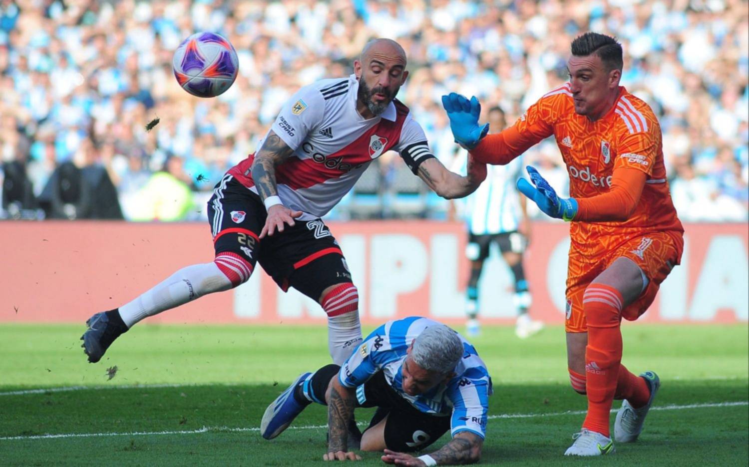 Racing volvió a desperdiciar una inmejorable oportunidad para consagrarse campeón de la Liga Profesional cuando a un minuto del final del encuentro que después terminó perdiendo por 2 a 1 frente a River Plate en Avellaneda, con el marcador igualado Jonathan Galván malogró un tiro penal que le contuvo Franco Armani y facilitó que Boca Juniors, con su empate frente a Independiente 2 a 2 en la Bombonera, sumara un nuevo título a su prolífico historial.