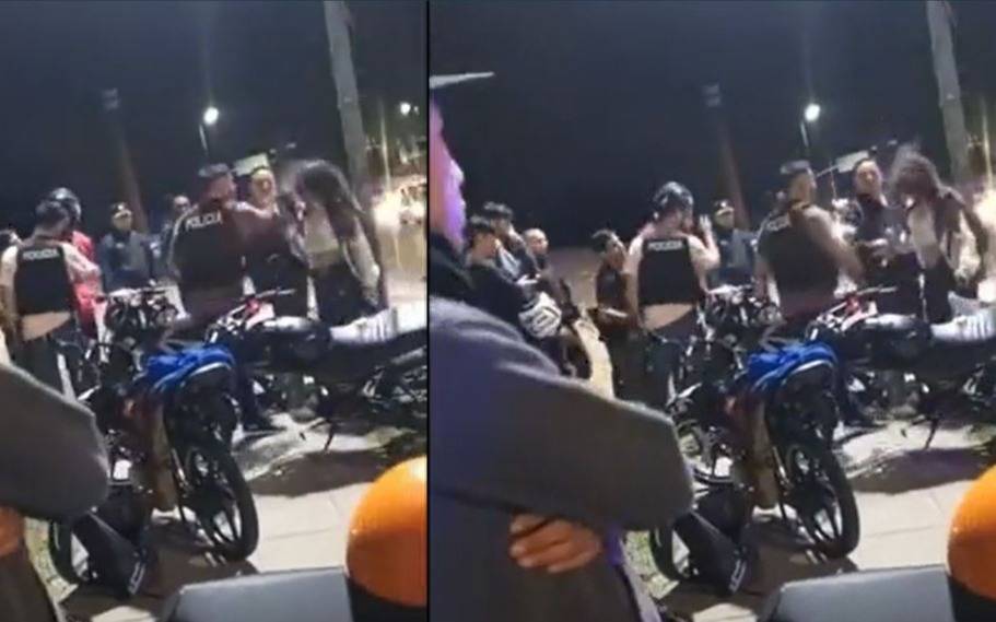 La mujer, atónita e indignada, se le acerca para pedirle explicaciones: “¿Quién sos para pegarme?”. Mientras tanto, el resto de los efectivos se encargó de reducir a su pareja para que no pudiera intervenir tras el golpe que le dieron a Débora.