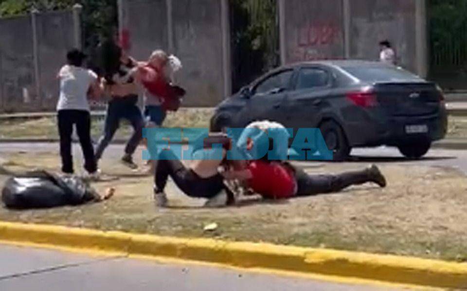 La secuencia, muy violenta, sucedió este mediodía en plena avenida 149 entre 63 y 64, a una cuadra del Colegio Agustín Roselli en Los Hornos.