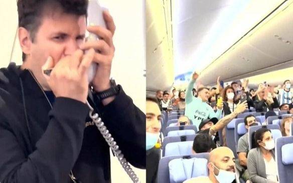 El líder de Ciro y los Persas observó que había mucha hinchada argentina en el avión y no lo dudó ni un segundo. Tomó su armónica para interpretarlo y, por medio de uno de los intercomunicadores, logró que todos las personas que estaban a bordo pudieran escuchar el himno patrio. Desconcertados, en un primer momento los hinchas solo atinaron a filmarlo, pero rápidamente comenzaron a acompañarlo con el coro. Hasta que, finalmente, todos se unieron a él y fue una explosión de alegría. Al terminar, el excantante de Los Piojos exclamó eufórico: “¡Vamos, Argentina!”, y todos lo ovacionaron.