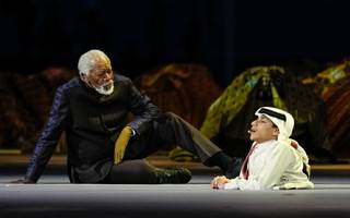 La fiesta comenzó con la actuación del estadounidense Morgan Freeman, ganador de un premio Oscar en 2005, junto con el influencer local Ghanim Al Muftah, víctima del síndrome de regresión caudal, a quien le faltan sus extremidades inferiores.