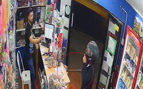 Uno de ellos descendió del rodado con el casco en su cabeza y entró al kiosco, donde enseguida sacó de entre sus ropas un pistolón y le apuntó al joven empleado, que estaba solo, colmándolo de terror. Al punto que instintivamente levantó sus manos al temer que le dispararan.