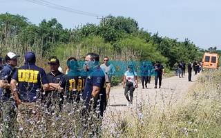 Pasadas las 11, mientras el lugar estaba resguardado con un fuerte cordón policial, llegó al lugar un vehículo de la morgue y peritos de la Policía Científica, con el fin de analizar la zona en busca de rastros que permitan establecer cuántos días se presume estuvo el cuerpo en ese zanjón.