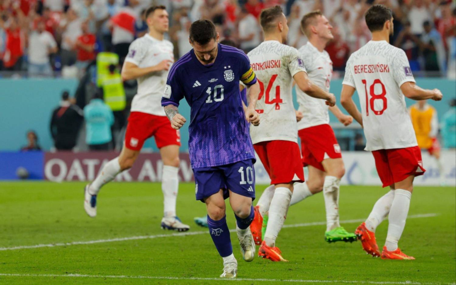 El arquero polaco, Wojciech Szczesny, le atajó un penal a Lionel Messi a los 38m. Con este empate, la clasificación argentina para octavos dependerá del resultado de México-Arabia Saudita.