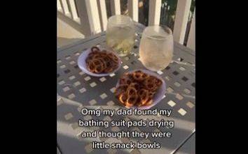 “Por Dios, mi padre encontró mis almohadillas de traje de baño secándose y pensó que eran pequeños cuencos de aperitivos”, dijo ella, ante la explicación de lo que sucedió.