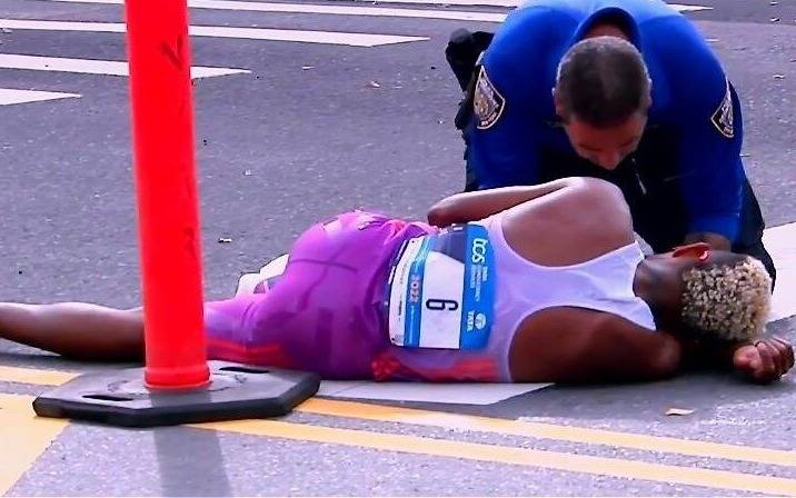 Pero al querer regresar a la pista, su cuerpo le pasó factura y ya no pudo levantar sus piernas para seguir camino. De esta manera, el ganador de la competencia fue Evans Chebet, de Kenia, con 2 horas, 8 minutos y 41 segundos.