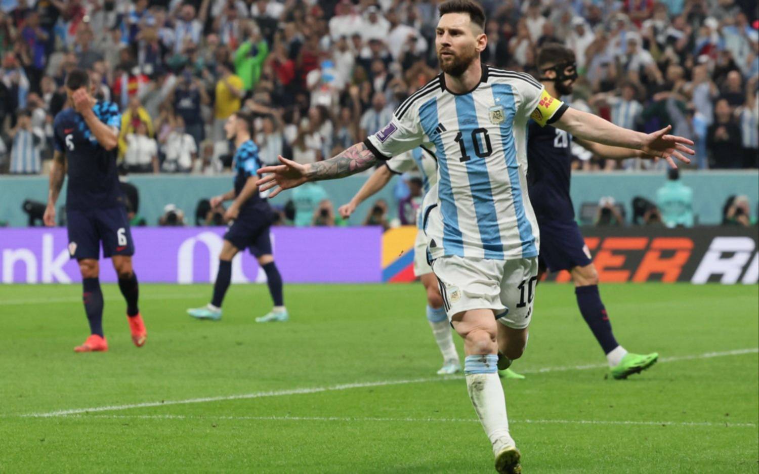 De penal, con falta de Dominik Livakovicv, el arquero croata a Julián Álvarez, Lionel Messi la clavó en el arco. El guardameta no tuvo nada que hacer.