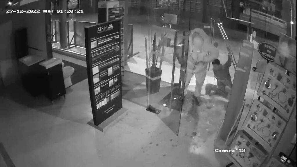 En la primera escena se observa cuando dos de ellos toman la manija del blindex y la forcejean de forma desesperada hasta que la estructura termina cediendo. Luego hicieron lo propio con una segunda estructura de vidrio.